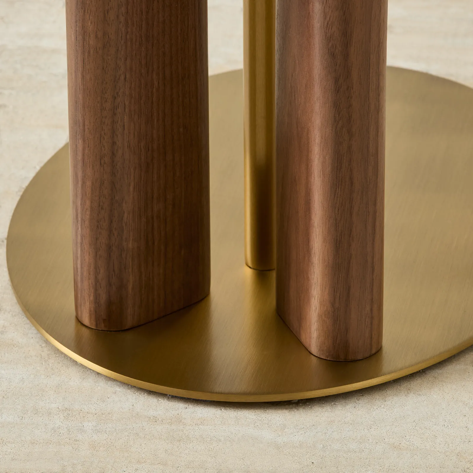 Brass accents add a subtle modern touch, complementing the natural warmth of the wood. The blend of stone, wood, and brass offers a perfect harmony of natural and modern elegance.